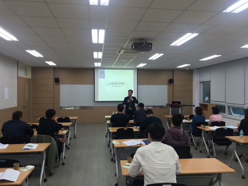 청송 임업인 종합연수원에서 진행한 산링조합 임직원 스피치교육 사진.